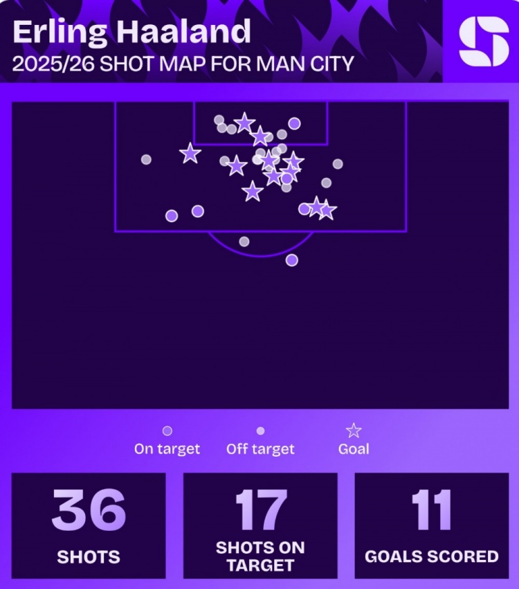 2025-10-06 00:38:01高效!哈兰德本赛季射门36次打进11球,平均每3.3脚射门进1球