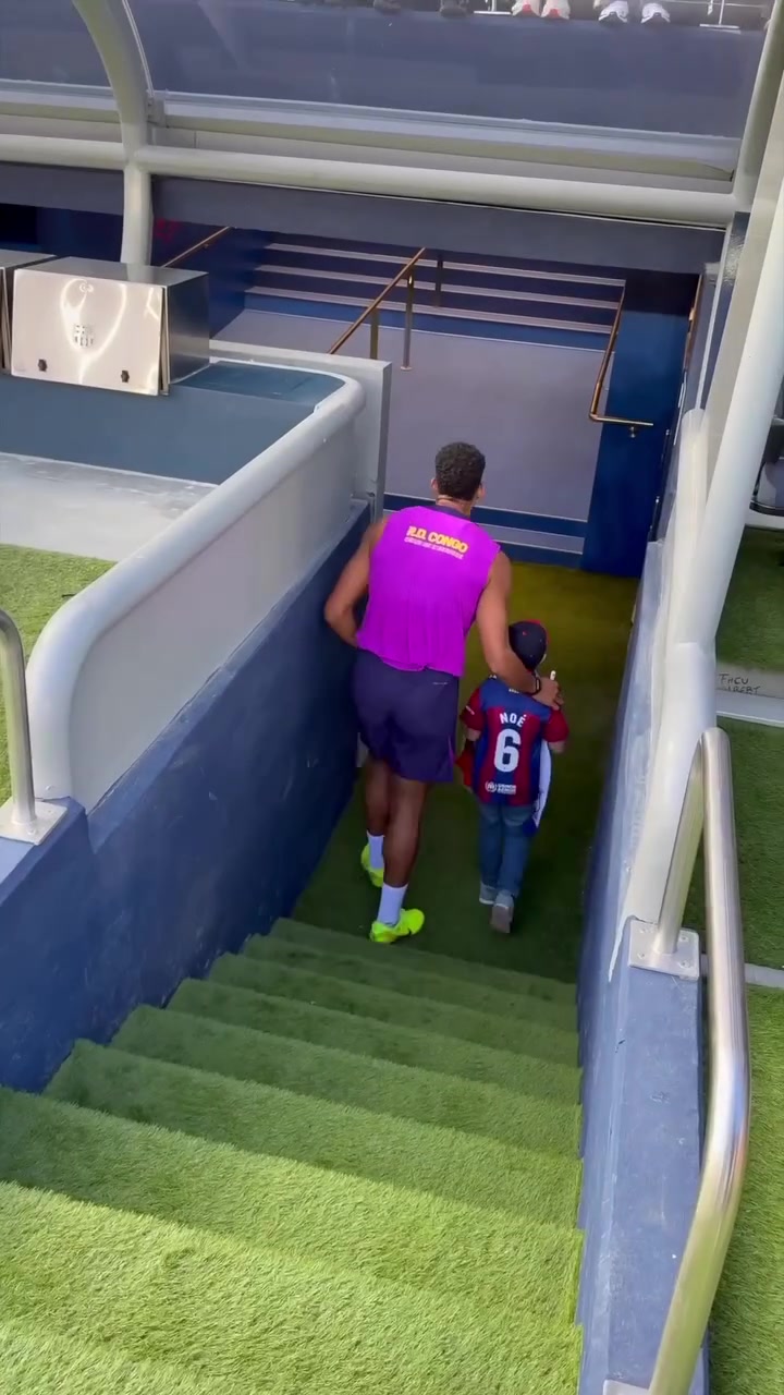 温馨一幕!阿劳霍带着患病小球迷见亚马尔