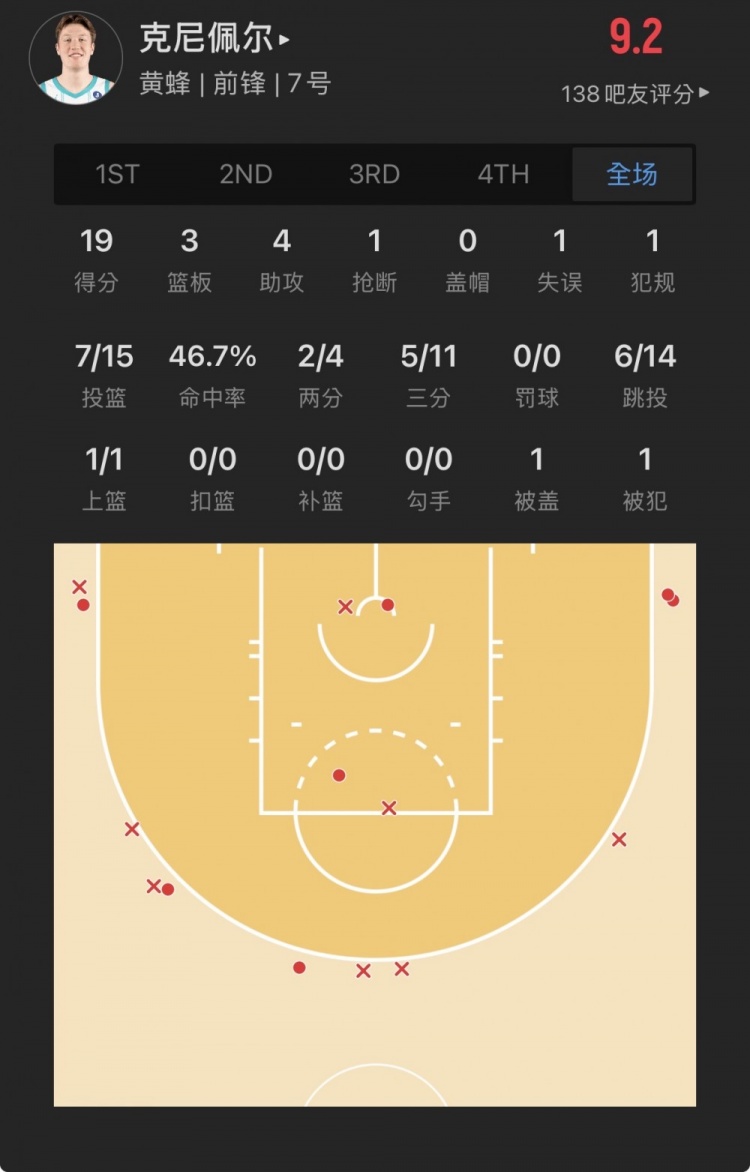 2025-10-30 02:54:03【菜鸟】黄蜂4号秀15中7砍19分&34号秀10分6板3断 埃奇库姆14+6+4