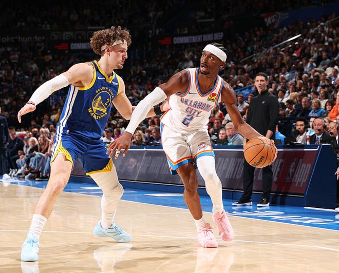 勇士客场挑战雷霆,勇士方面波津复出,库里、巴特勒、梅尔顿、穆迪、小库里缺阵,雷霆方面杰伦、切特、哈滕、卡鲁索、米切尔缺阵,上半场比赛雷霆一直压制勇士,半场战罢领先13分,第三节勇士表现出色,单节追回10分,三节战罢雷霆领先3分,第四节雷霆开局把分差扩大到9分,勇士在比赛还剩2分钟时把分差追到2分,最后2分钟亚历山大独得5分,勇士没有得分,雷霆104-97击败勇士,拒绝逆转。亚历山大15中6得到27分5板5助,以赛亚乔12中5得到18分4板3助、肯威9中5得到13分7板1助,勇士方面桑托斯19中8得到22分11板3助2断、波杰姆17中6得到17分6板6助2断、追梦10中6(三分6中4)得到16分4板5助2断。