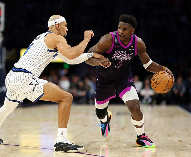 森林狼主场迎战魔术,森林狼主力俱在,魔术少了小瓦格纳,比赛刚打了2分钟,魔术大将布莱克伤退,首节比赛森林狼取得3分领先,第二节魔术单节赢了13分,半场战罢魔术领先10分,第三节魔术赢了2分,三节战罢领先12分,第四节森林狼崩盘,分差迅速扩大,最终魔术119-92大胜森林狼。班凯罗18中10得到25分15板3助,贝恩17中10得到30分3板4助,森林狼方面爱德华兹18中8(三分9中5)得到34分3板2助2断,戈贝尔6中6得到12分8板3断。